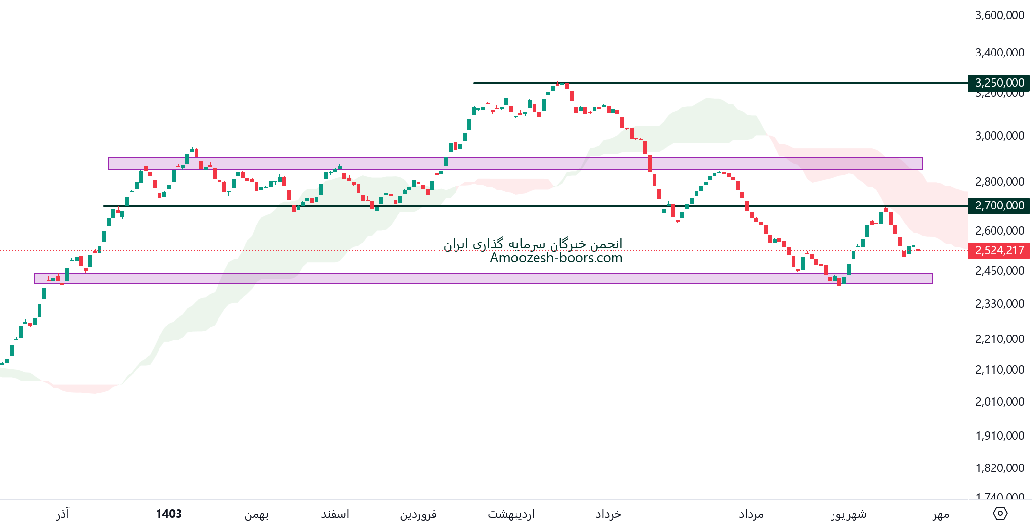 از منظر تکنیکالی شاخص کل بعد از اصلاح پر فشاری که تجربه کرده و از محدوده حمایتی 2.400.000 واحد برگشته و به مقاومت 2.700.000 واحد رسیده، در صورت عبور از این محدوده، مقاومت بعدی 2.900.000 واحد خواهد بود، در صورت ورود به فاز اصلاحی، اولین مقاومت شاخص 2.400.000 واحد در نظر گرفته خواهد شد.