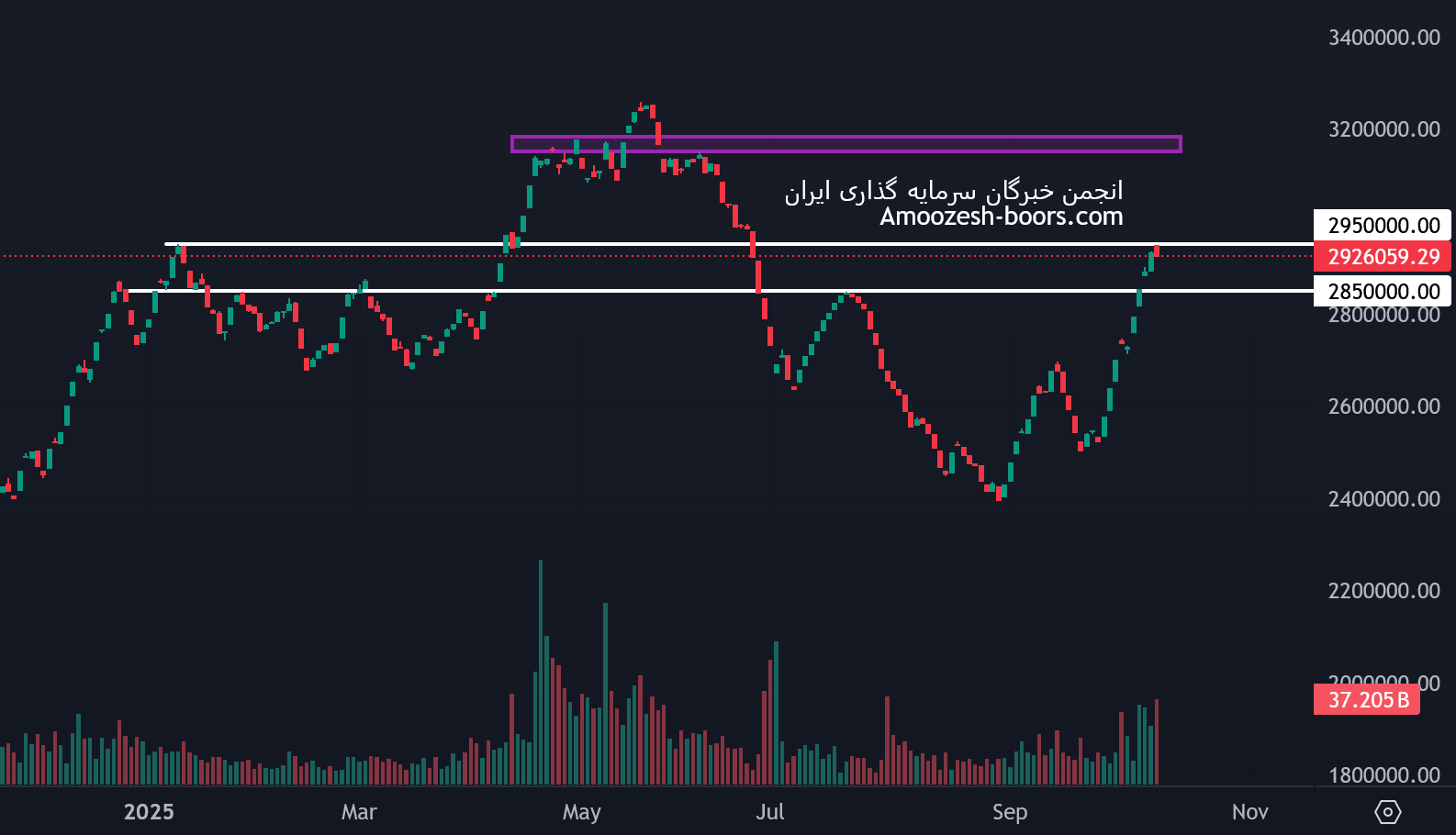 از منظر تکنیکالی شاخص کل به محدوده مقاومتی 2.950.000 واحد رسیده است، مقاومت بعدی محدوده 3.200.000 و اولین حمایت نیز محدوده 2.850.000 واحد در نظر گرفته خواهند شد.