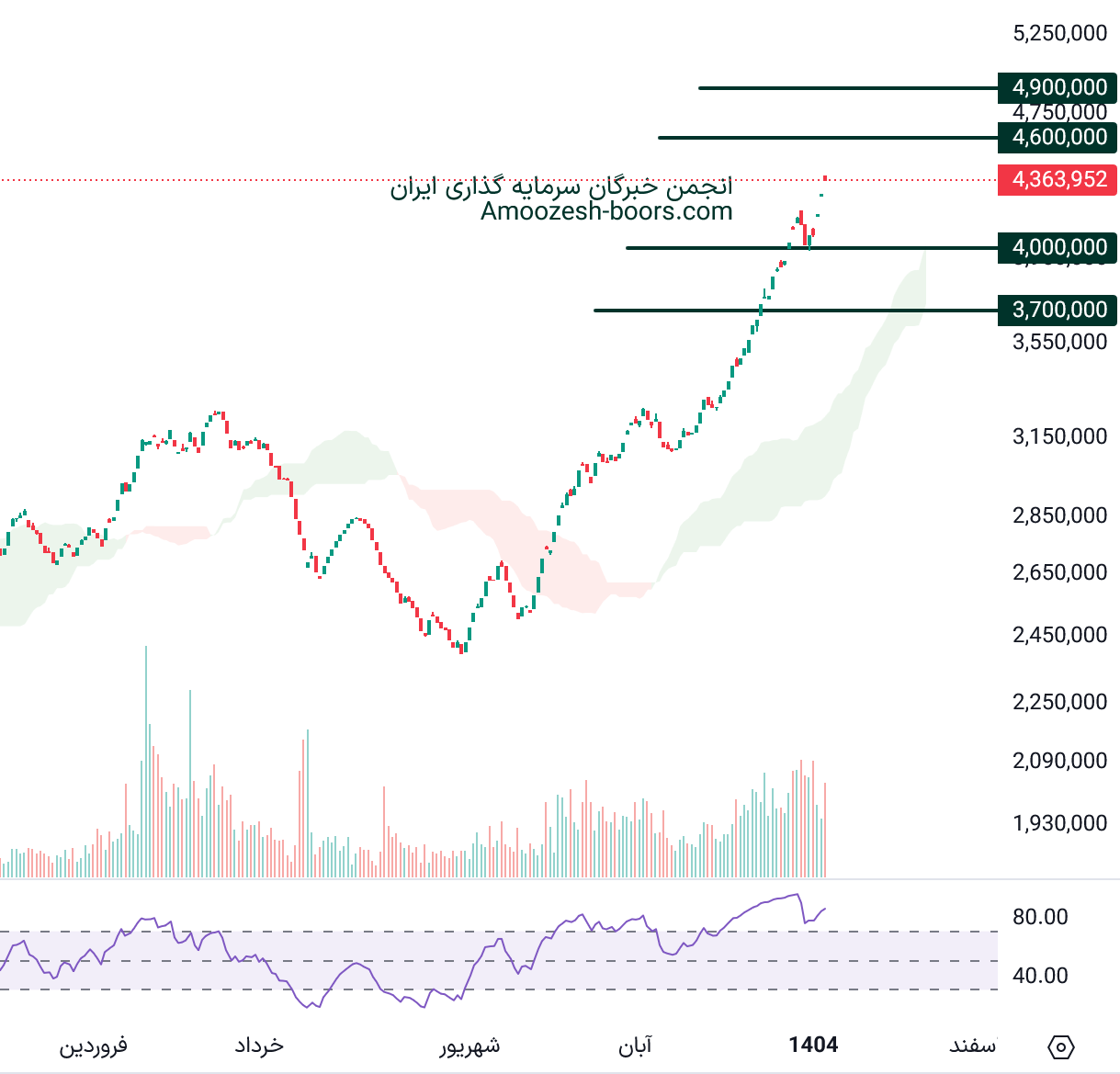 از منظر تکنیکالی اولین حمایت شاخص کل نیز 4.000.000 واحد و مقاومت ها به ترتیب 4.600.000 و 4.900.000 واحد در نظر گرفته خواهد شد.