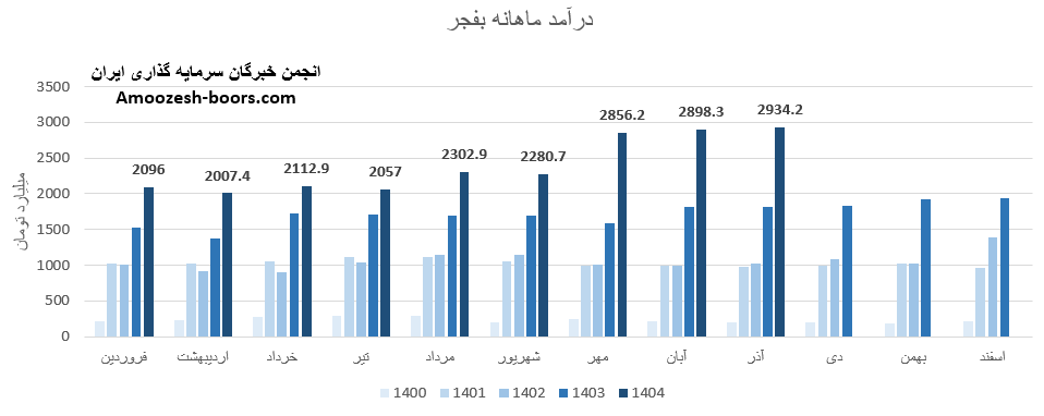 سهام بفجر از ابتدای سال مالی تا پایان آذر 1404، به درآمد 21546 میلیارد تومان رسیده که نسبت به مدت مشابه سال گذشته 44 درصد رشد داشته، و در همین حال 4% بیشتر از کل درآمد سال گذشته تحقق یافته است.