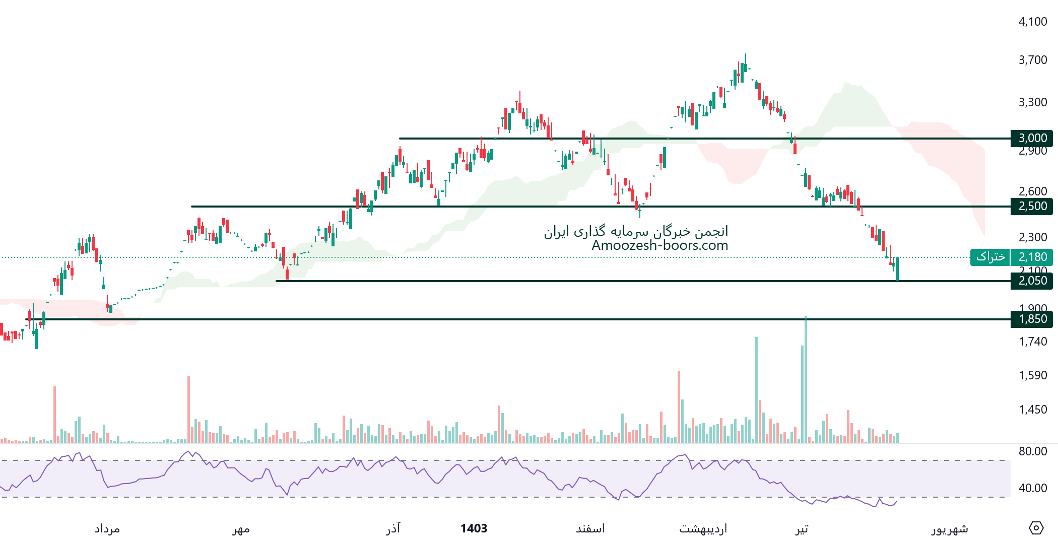 طبق نمودار قیمتی، حمایت مهم ختراک در محدودهی 205 تومان قرار دارد، این سطح قبل از این چندین بار بهعنوان ناحیه برگشتی عمل کرده و واکنش قیمت به آن قابل توجه بوده است، از سوی دیگر، محدودهی 250 تومان بهعنوان مقاومت مهم ختراک در نظر گرفته میشود که قیمت سهم در برخورد با آن دچار فشار فروش شده است.