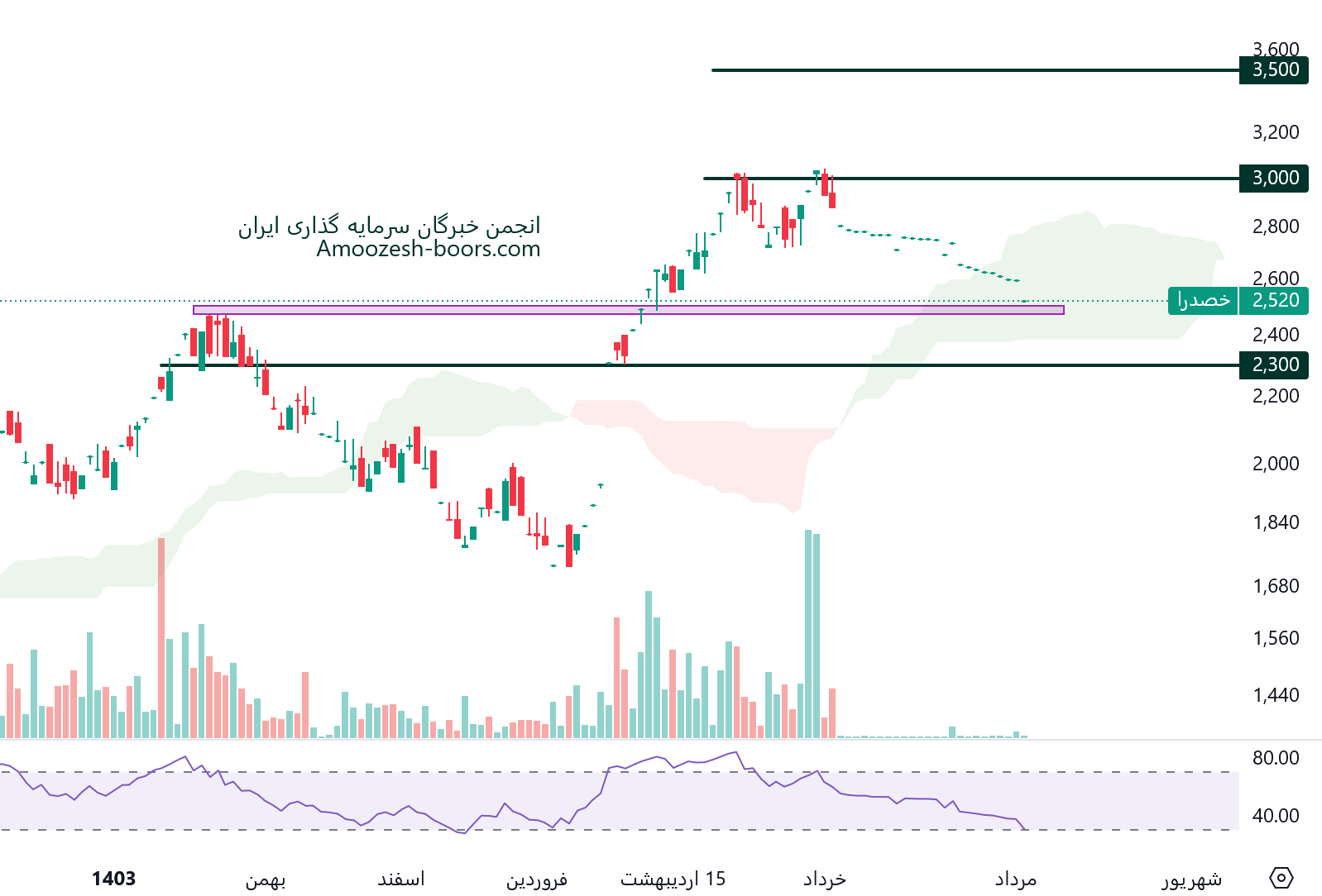 سطح مقاومتی خصدرا : مقاومتهای پیش روی سهم در محدودههای 2450 تومان و 3000 تومان قرار دارند، عبور قیمت از این سطوح میتواند نشاندهنده ادامه روند صعودی باشد.