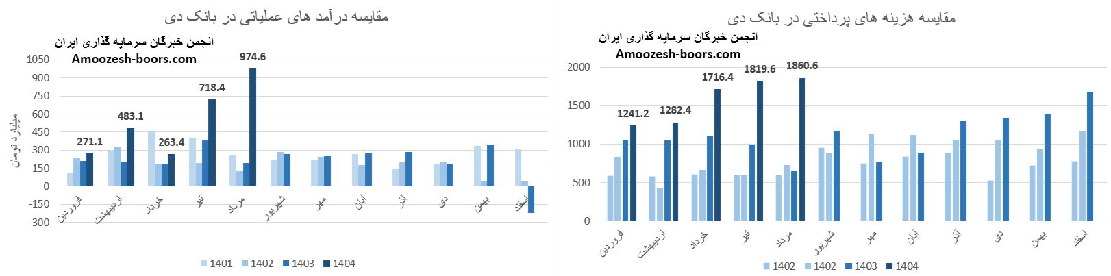 در بخش درآمدها، بانک دی در فروردین ماه ( +28% ) نسبت به مدت مشابه تغییر داشته است.