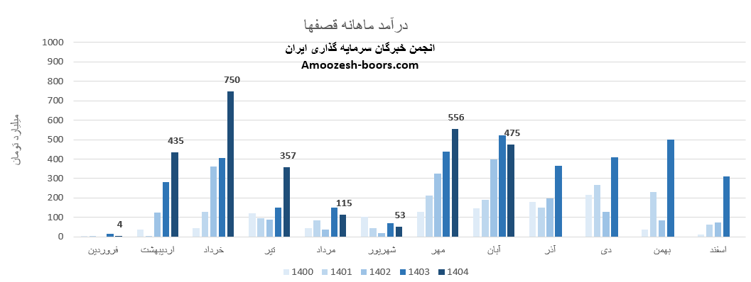 سهام قصفها از ابتدای سال مالی تا پایان مرداد 1404، مجموع درآمد ثبت شده شرکت به 1660 میلیارد تومان رسیده که نسبت به مدت مشابه سال گذشته 66 درصد رشد داشته، و در همین حال 46 درصد از کل درآمد سال گذشته تحقق یافته است.