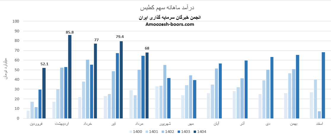 بر اساس صورت مالی و عملکرد ماهانه سهام کطبس که در کدال منتشر شده، این شرکت در این ماه توانسته به درآمد 68 میلیارد تومان دست یابد، این عدد در مقایسه با ماه گذشته تغییر 14%-، در مقایسه با متوسط ماهانه 8%- و در مقایسه با مدت مشابه 5%+ داشته است.
