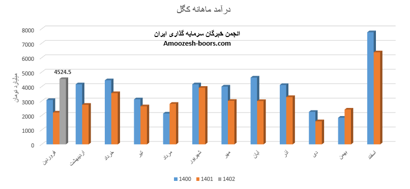 درآمد آبان ماه سال 1402 سهم کگل 5979.8 میلیارد تومان بوده است که در مقایسه با ماه گذشته 18% داشته است.